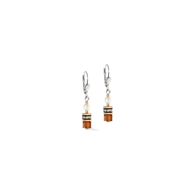 GeoCUBE Boucles d'oreilles Coeur de Lion GeoCUBE Mini Fusion Pearls en acier, perles de cristal, oeil de tigre et strass