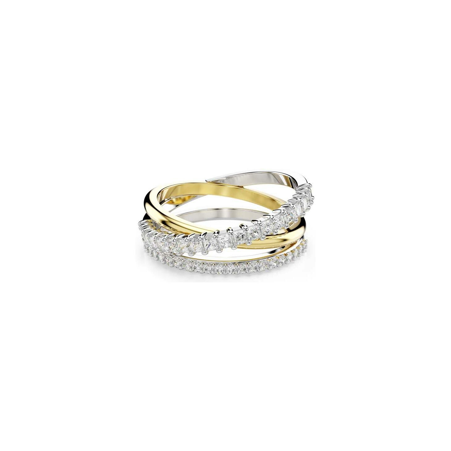 Bague Swarovski Hyperbola Spin en métal rhodié, métal doré et cristaux Swarovski, taille 50